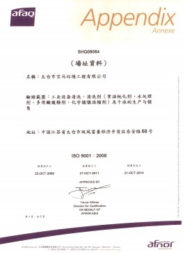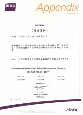 已經(jīng)獲得最嚴(yán)格的法國(guó)AFAQ-EAQA ISO9001、ISO14001、OHSAS18001認(rèn)證,取得電廠鍋爐化學(xué)清洗A級(jí)資質(zhì)。