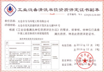 B級(jí)工業(yè)設(shè)備高壓水清洗資質(zhì)證書